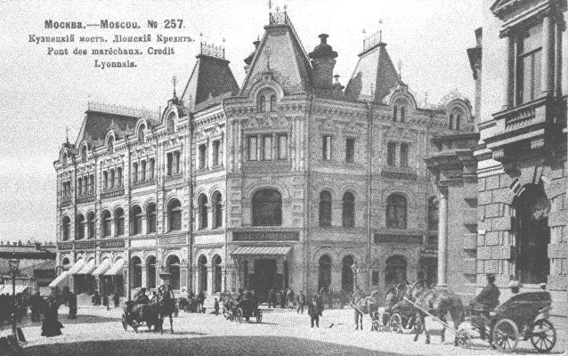 Основанный Л. С. Поляковым Московский международный торговый банк был одним из самых крупных банков России. Учреждение выкупило участок земли неподалёку от Кремля, и в 1895—1898 годах архитектор Сергей Эйбушитц возвёл на переломе улицы современное здание, замыкающее перспективу между Неглинной и Рождественкой.