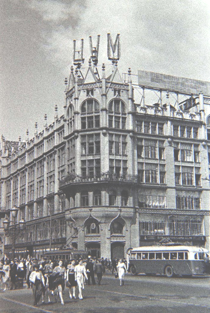 Мы с вами уже знаем историю шотландских предпринимателей, а вскоре после пребывания на Кузнецком мосту торговый дом «Мюр и Мерилиз» купил здание для большого магазина на Театральной площади, на месте сегодняшнего ЦУМа. Магазин на этом месте открылся 10 сентября 1885 года — в трёхэтажном здании, переделанном под магазин Романом Клейном.