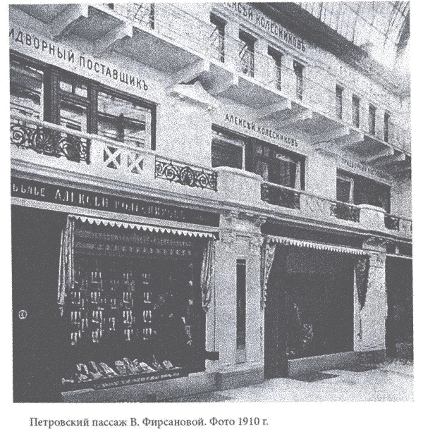 Петровский пассаж на момент своего открытия носил название Фирсановский, так как принадлежал Вере Ивановне Фирсановой, был построен по её инициативе и на её средства.